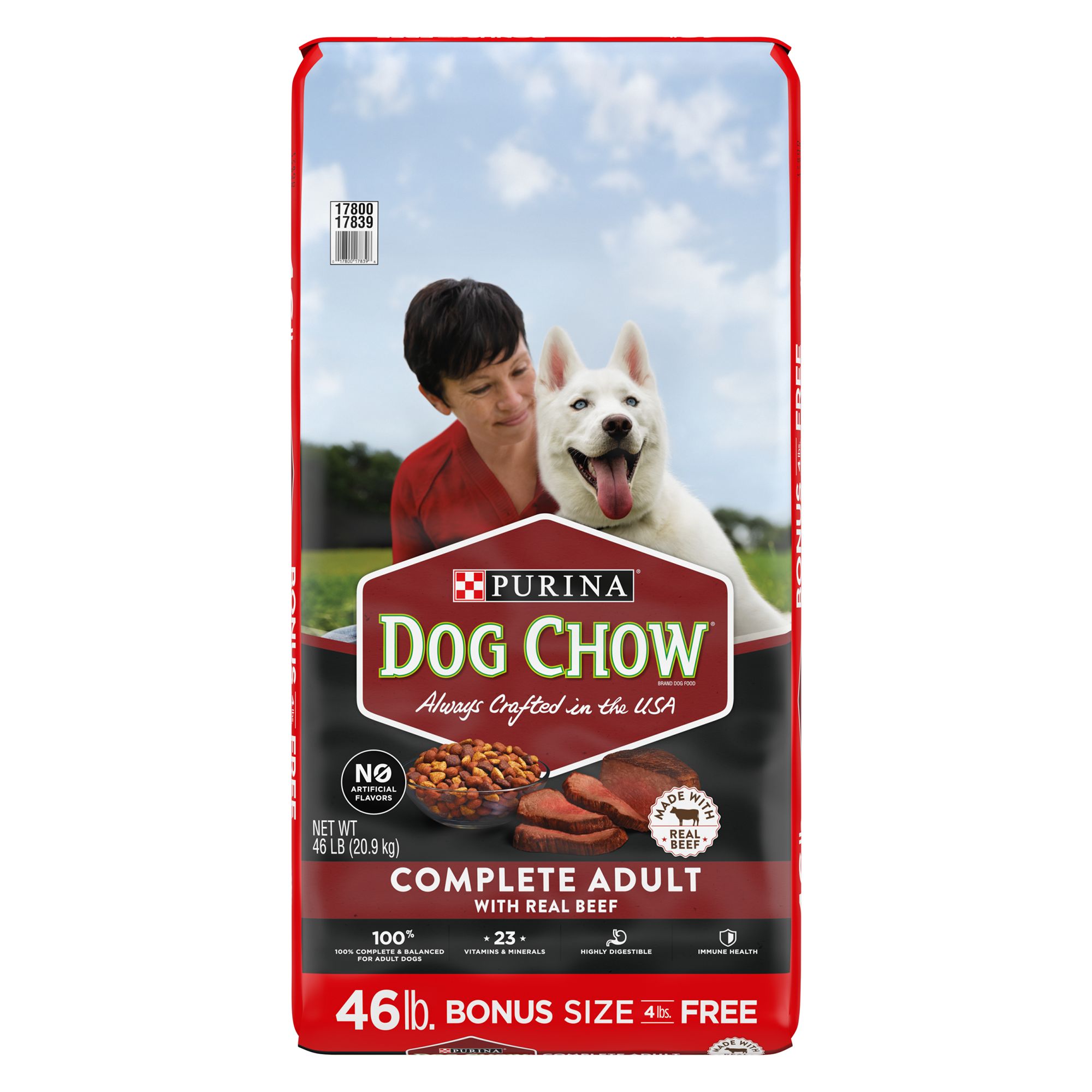 Purina Dog Chow Complete With Real Beef High Protein Adult Dry Dog Food One (1) 52 lb. Bag - Purina Dog Chow Dry Dog Food, Complete Adult With Real Beef Made with real beef. 100 percent complete and balanced for adult dogs Contains 23 essential vitamins and minerals. Supports your dog's immune system Highly digestible formula. High-quality protein for strong muscles Delicious taste of beef that dogs love.