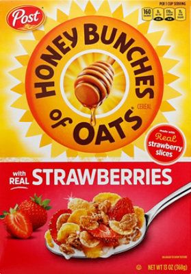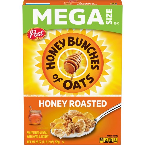 Honey Bunches of Oats Honey Roasted Cereal - 12oz - Post Highlights. Honey Bunches of Oats cereal is chock full of crunchy goodness and delivers a touch of sweetness to your morning breakfast cereal. Help start your mornings feeling energized and enjoy this oats and honey cereal filled with crispy corn flakes and crunchy oat granola clusters. Honey roasted cereal contains 14 grams of whole grains per ...